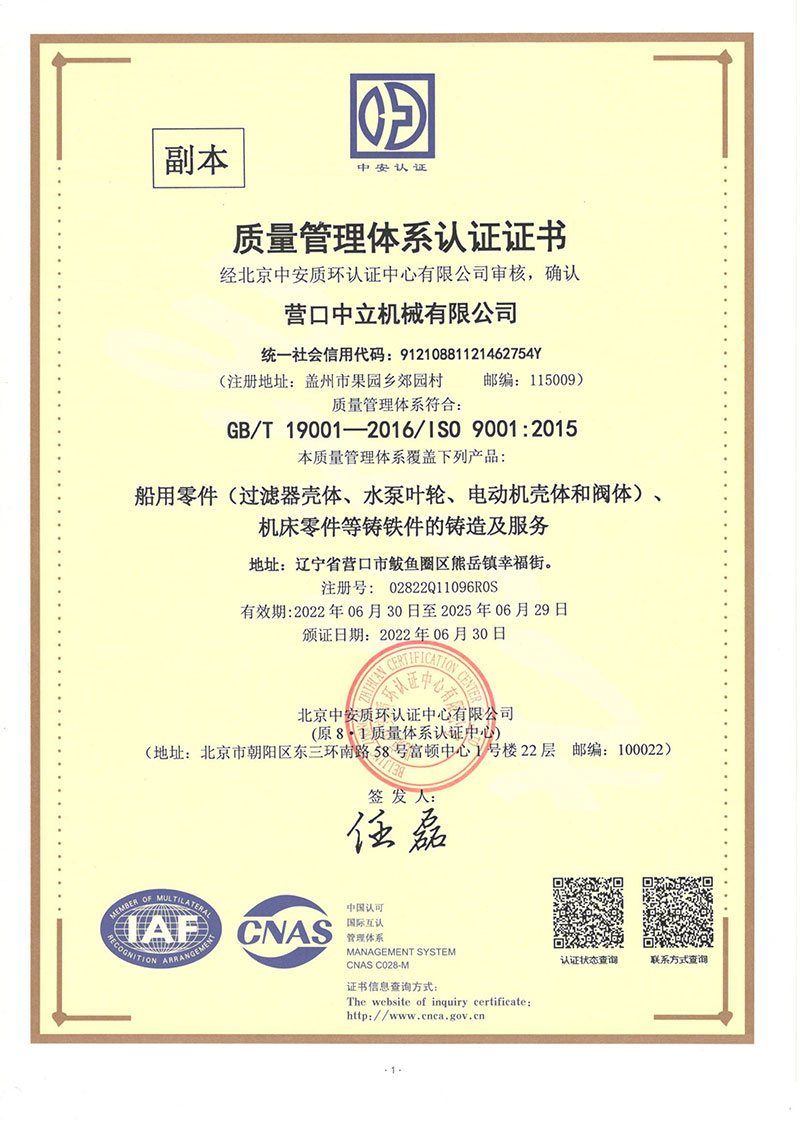 營(yíng)口中立機(jī)械有限公司位于營(yíng)口市鲅魚(yú)圈區(qū)熊岳鎮(zhèn)幸福街,成立于1982年,占地面積15000平方米,建筑面積10000平方米,是從事高性能鑄鐵件生產(chǎn)的專業(yè)廠家。年生產(chǎn)能力5000噸。鑄造采用電爐熔煉呋喃樹(shù)脂砂造型先進(jìn)工藝生產(chǎn),產(chǎn)品具有材質(zhì)性能高、形狀復(fù)雜、尺寸精度、表面美觀等特點(diǎn)。多年來(lái)產(chǎn)品主要出口日本、德國(guó)及英美等國(guó)家,產(chǎn)品種類有機(jī)床、電機(jī)、船用閥門水泵、工程機(jī)械等千余品種鑄件或加工配套產(chǎn)品。