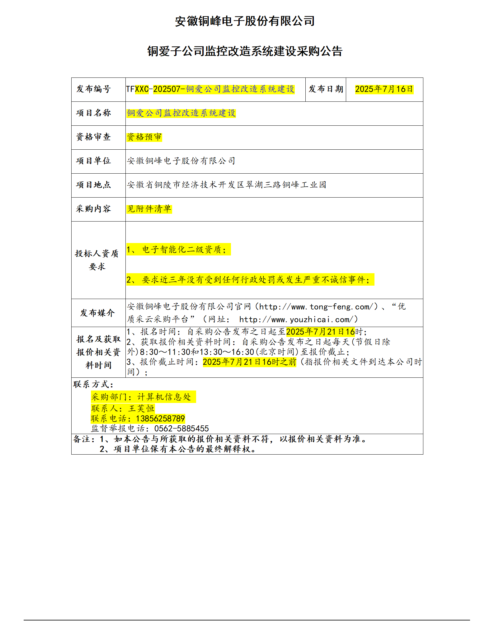 安徽銅峰電子股份有限公司 (采購(gòu)公告)_01